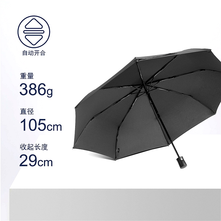 伞面撑开尺寸达105cm,重量仅为386g,收起后长度为29cm,兼具实用性与便携性,满足日常与旅行需求。